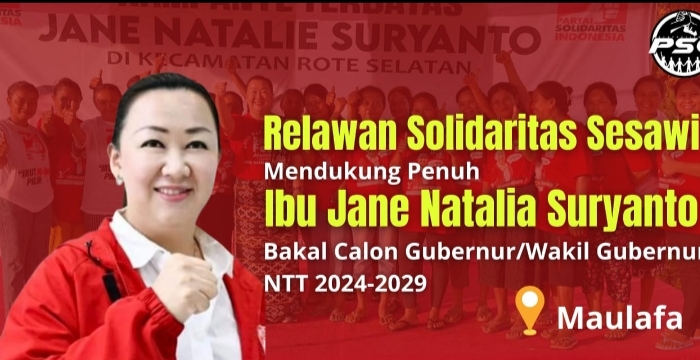 PATROLICIA COM PROPINSI NTT Relawan Solidaritas Sesawi secara resmi mengumumkan dukungan mereka untuk Ibu Jane Natalia Suryanto sebagai calon potensial untuk jabatan Gubernur atau Wakil Gubernur Nusa Tenggara Timur (NTT) periode 2024-2029. Deklarasi dukungan ini dilakukan pada hari Minggu, 21 April 2024, di KelurahanOepura Kecamatan Maualafa.