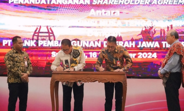 PATROLICIA COM PROPINSI NTT Penjabat (Pj) Gubernur Nusa Tenggarang Timur (NTT), Dr. Andriko Noto Susanto, S.P, M.P menandatangani perjanjian antar pemegang saham pengendali atau Shareholder Agreement (SHA) antara Pemerintah Provinsi NTT dengan PT. Bank Pembangunan Daerah Jawa Timur (Bank Jatim).
