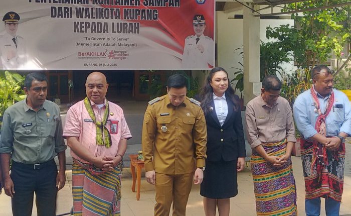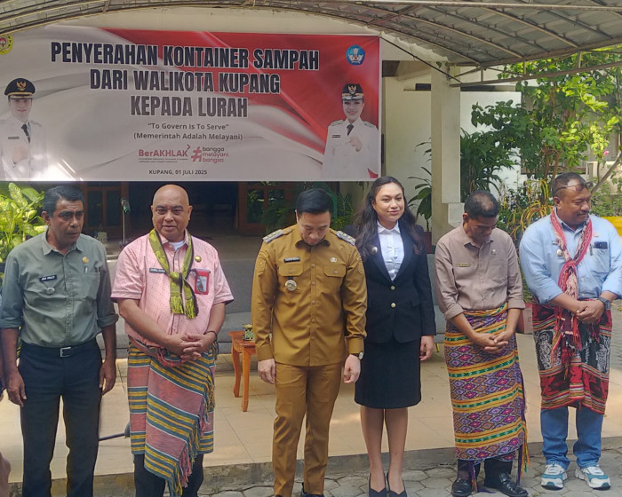 memperkuat komitmennya dalam membangun sistem pengelolaan sampah yang terpadu dan berkelanjutan. Salah satu langkah konkret yang dilakukan adalah penyerahan kontainer sampah oleh Wali Kota Kupang, dr. Christian Widodo dan Wakil Wali Kota Kupang, Serena C. Francis, S.Sos., M.Sc., kepada para lurah se-Kota Kupang, yang berlangsung di halaman Kantor Dinas Pendidikan dan Kebudayaan Kota Kupang, Selasa (1/7). Turut hadir Kepala Dinas Pendidikan Kota Kupang, Drs. Dumuliahi Djami, M.Si., para Lurah serta para Kepala Sekolah penyumbang Kontainer Sampah.