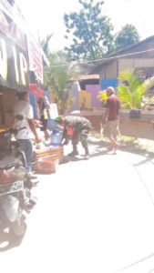 Anggota Koramil 1802-02/Sorong Serka La Giri memberikan himbauan kepada warga binaan tentang cara mencuci tangan yang baik dan benar agar terhindar dari virus Covid-19, bertempat kelurahan rufei sorong kota.Rabu,29/04/2020
