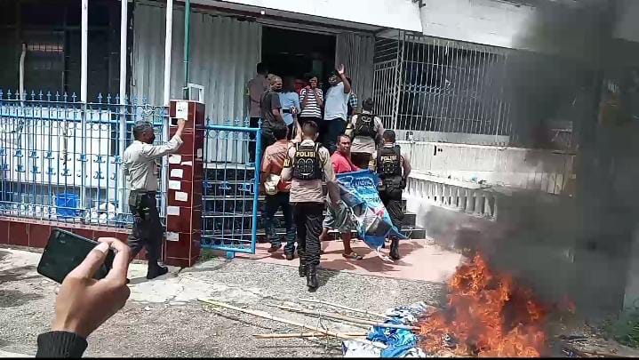 PATROLI.CIA.COM KOTA KUPANG- Ratusan orang yang menyebut diri simpatisan Jefri Riwu Kore (Jeriko) merasa kecewa dan geram atas SK DPP Demokrat (SK dari AHY, red) yang menunjuk Leo Lelo menjadi Ketua DPD Demokrat NTT, ratusan masa simpatisan Jefri Riwu Kore (Jeriko) melakukan aksi damai di depan gedung DPD Demokrat NTT sambil membakar sejumlah atribut Partai Demokrat: bendera dan poster partai Demokrat, baliho dan poster bergambar wajah Ketua Umum Partai Demokrat, Agus Harimurti Yudhoyono (AHY) pada Selasa (4/1/2022).