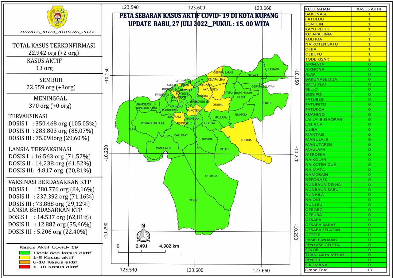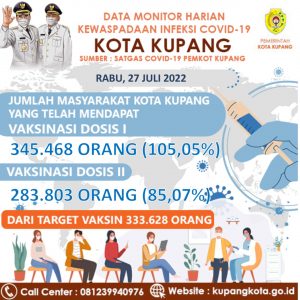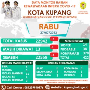 Patrolicia.com/kota Kupang –          Update   hari ini Rabu, 27 Juli 2022 Pukul 15.00 WITA. Disampaikan kepada Masyarakat Kota Kupang, bahwa :
